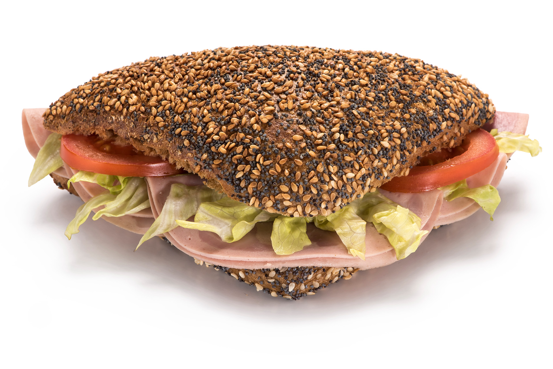 Fitnesseck [Weizenmehl, Joghurt (3,6% Fett), Wasser, Roggenschrot, Sojaschrot, Weizengrieß, Mohn, Sesam, Sonnenblumenkerne, Leinsamen, Salz unjodiert, Hefe, Zucker, Hartweizengrieß, Roggenmalzquellmehl, Weizenmalzmehl, Dextrose], Krakauer 34% [Schweine-u. Rindfleisch 90%, Trinkwasser, Speisesalz, Gewürze, Dextrose, Stabilisatoren: E450, E451, E452, Maltodextrin, Geschmacksverstärker: E621, Antioxidationsmittel: E300, E301, Gewürzextrakte, Konservierungsstoff: E250], Ei, Tomate, Gurke, Salat